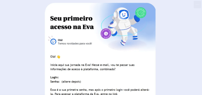 Você receberá um e-mail automático com seu login e senha de acesso, parecido com este: