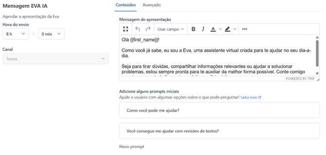 Essa funcionalidade está disponível apenas para clientes que possuem a Eva IA habilitada e utilizam o canal Teams.