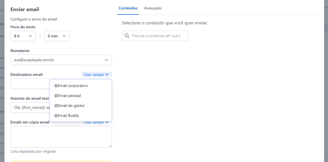 - Em Destinatário email, você pode usar um campo adicional (ex.: ).