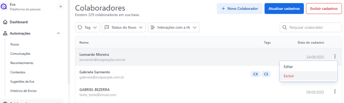 Aprenda a excluir colaboradores da Eva com segurança e veja o que acontece com seus dados e comunicações após a exclusão.