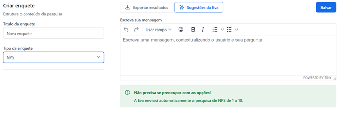 Aprenda a criar e editar enquetes na Eva, incluindo enquetes abertas e NPS